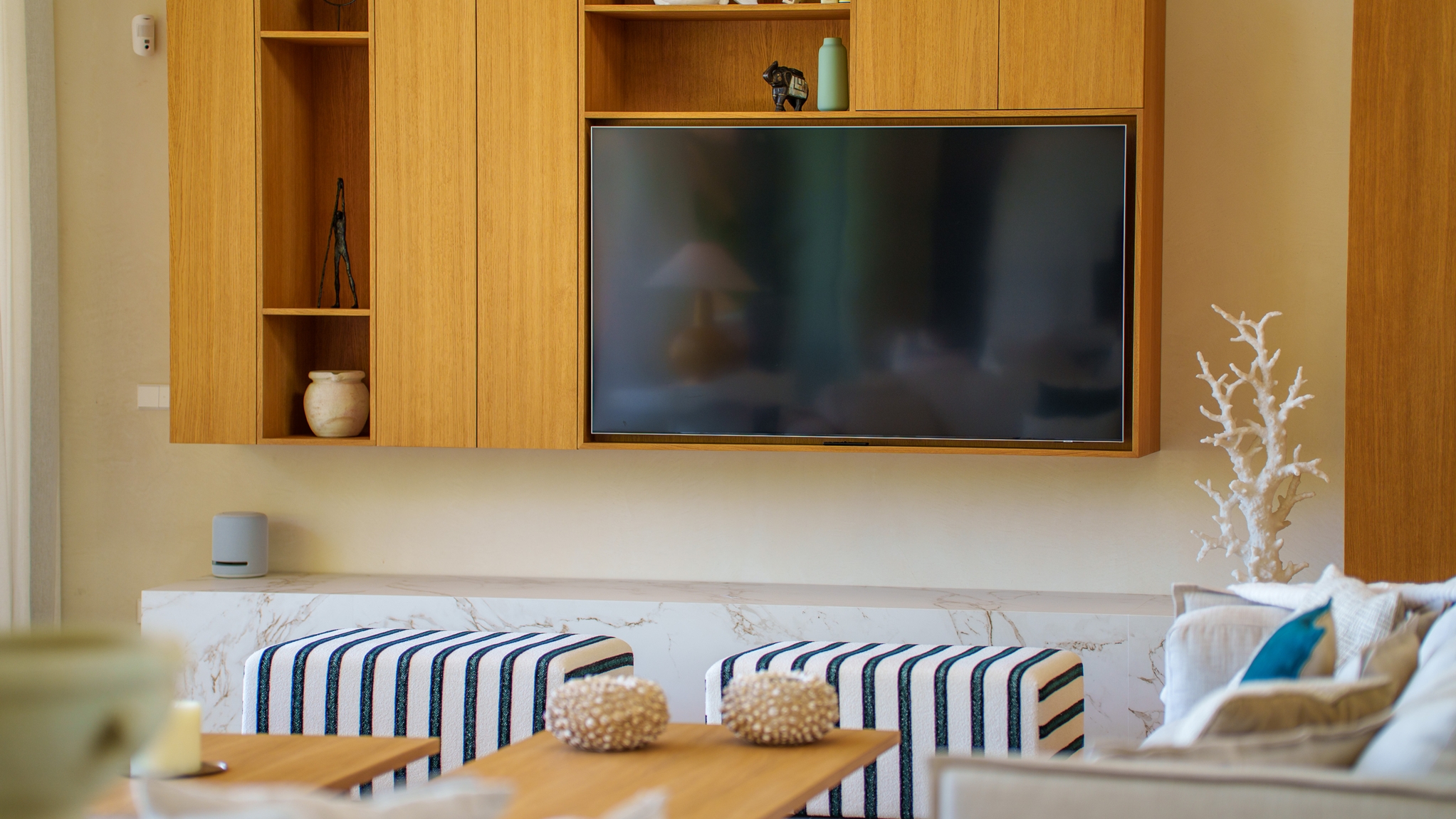 The master bedroom is an ideal private oasis, exuding comfort and style. The bedroom is connected to a private terrace that sports panoramic views of the surrounding area and Mediterranean sea.