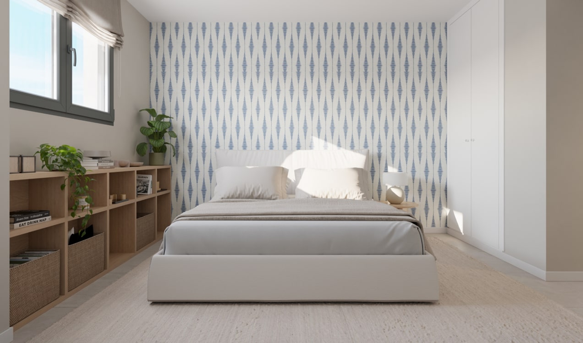 The master bedroom is an ideal private oasis, exuding comfort and style. The bedroom is connected to a private terrace that sports panoramic views of the surrounding area and Mediterranean sea.