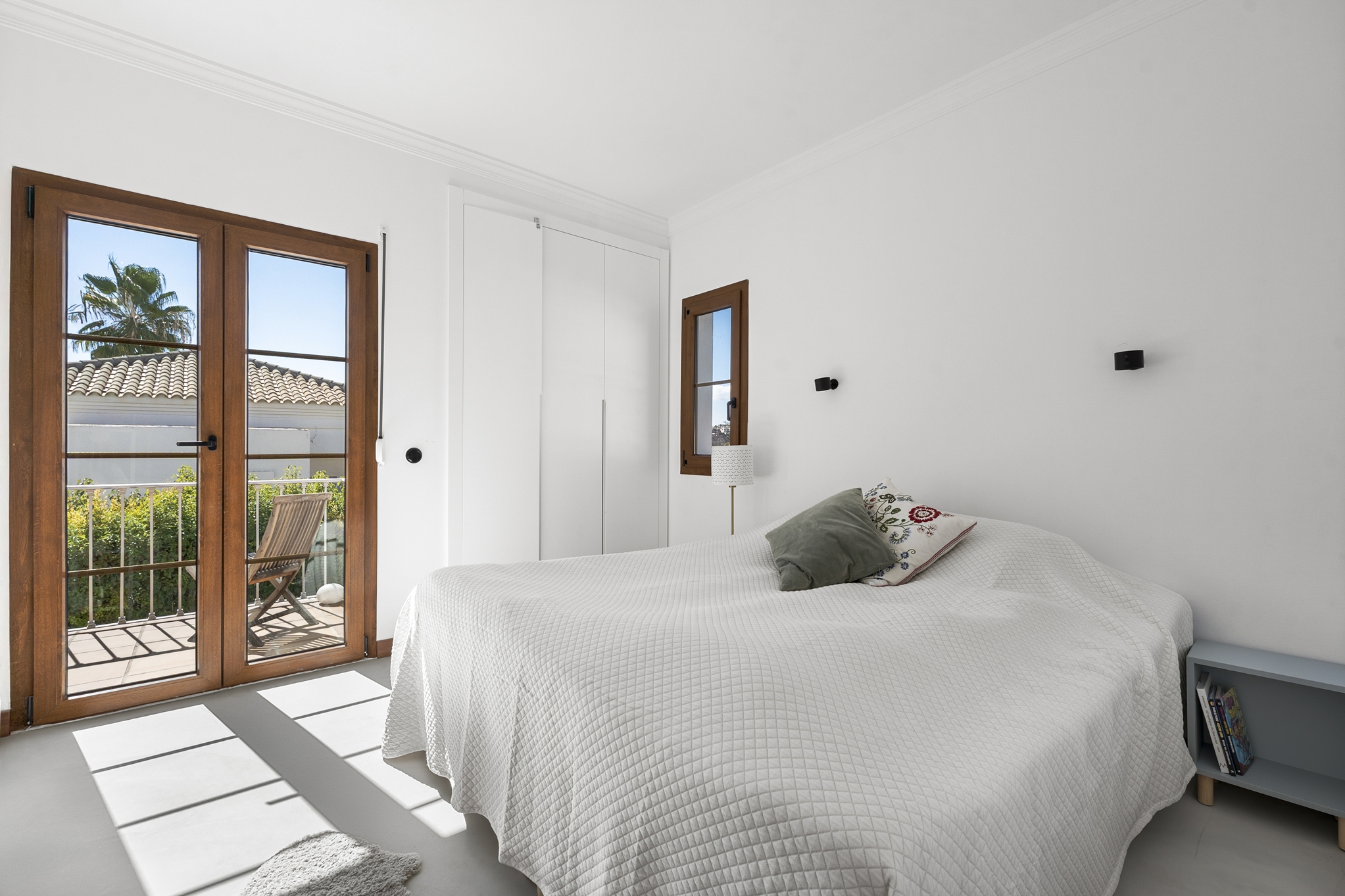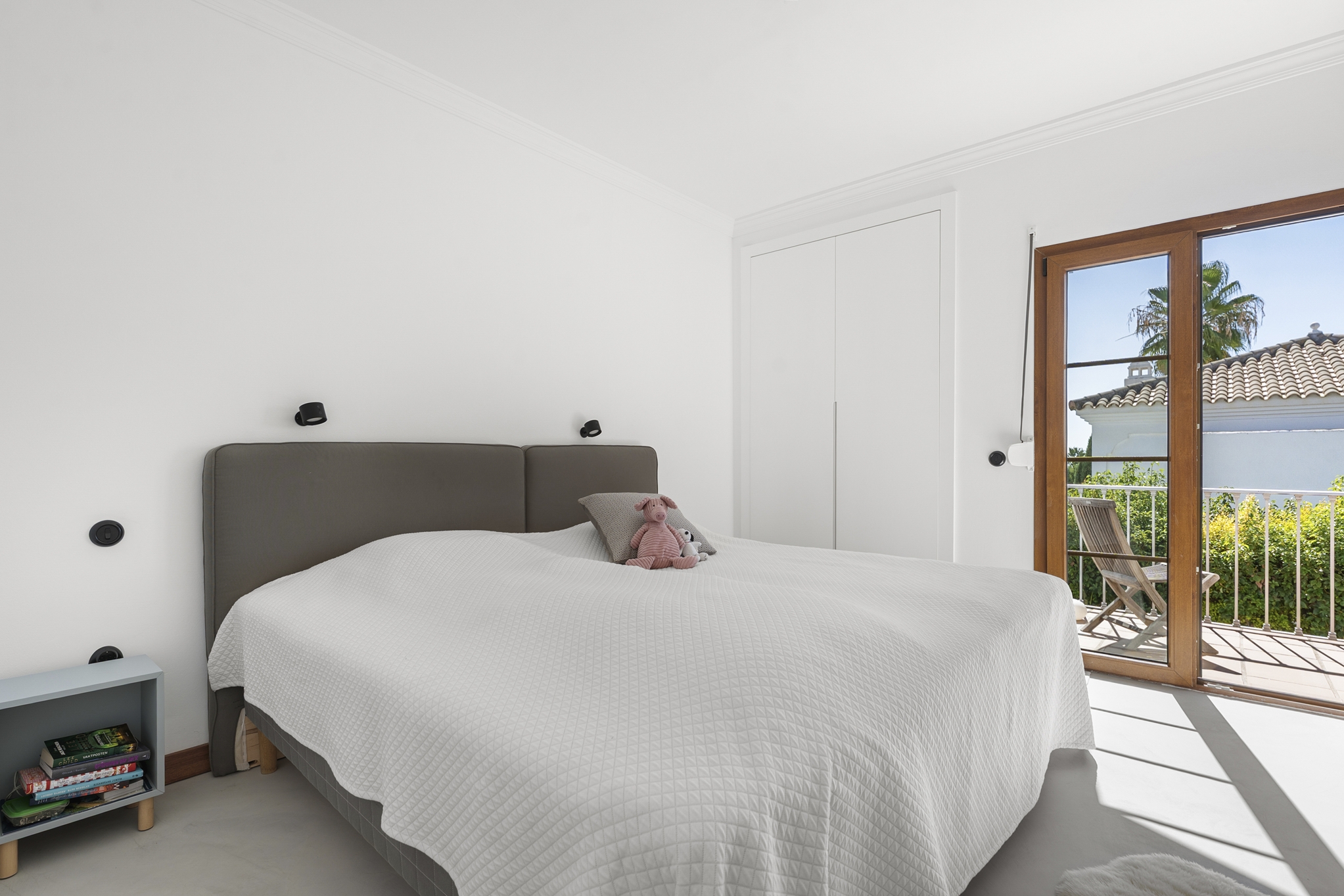 The master bedroom is an ideal private oasis, exuding comfort and style. The bedroom is connected to a private terrace that sports panoramic views of the surrounding area and Mediterranean sea.