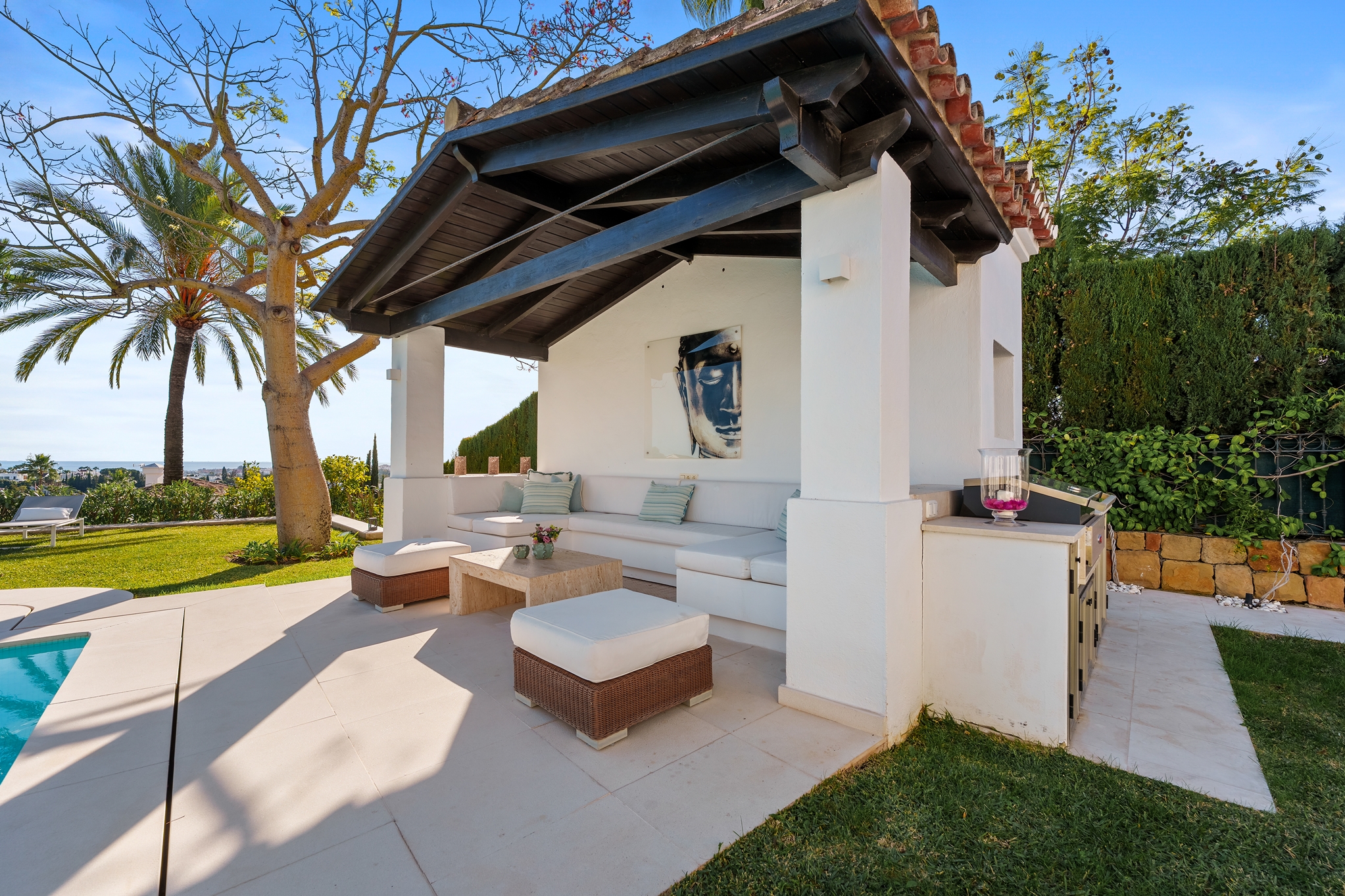 Sitting on a generous elevated plot, this villa grants residents an exclusive and sophisticated lifestyle. The property lies on a plot boasting stunning landscaping and manicured gardens. A private pool adds to the allure of the outdoor space, as well as the numerous chill-out areas.The property is dotted with plenty of floor to ceiling windows, ensuring that plenty of natural light will flood the interior spaces. The interior design is impeccable, displaying the finest collection for furniture and decorations.