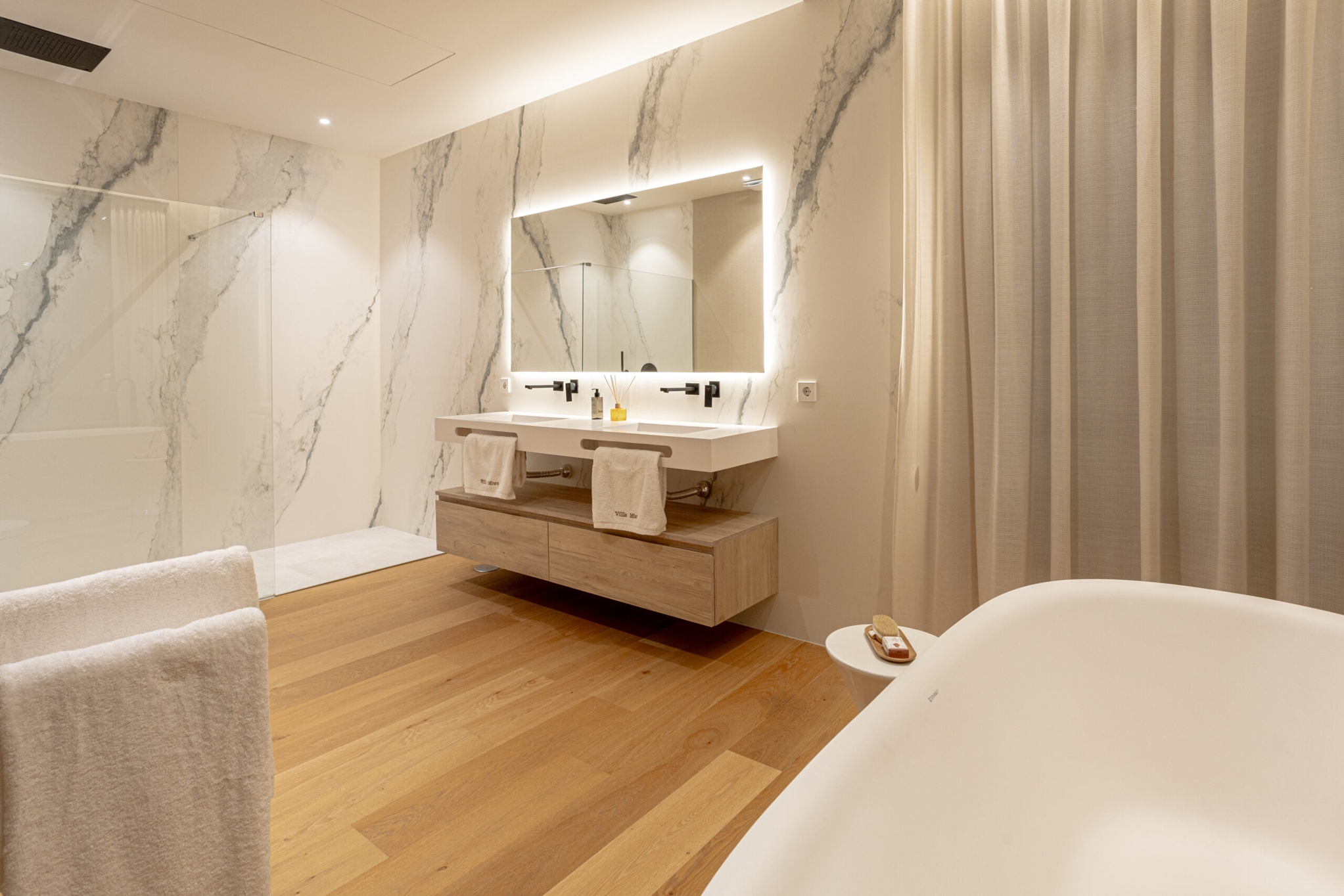 Step into an architectural marvel where every detail speaks of sophistication and style. Indulge in the exquisite interior design, where every corner whispers elegance and comfort. Entertain guests effortlessly in the villa's entertainment level, boasting unparalleled amenities and spaces designed for memorable gatherings.Elevate the living experience with private infinity pools and meticulously landscaped gardens that extend to spacious outdoor terraces. Adding an extra layer of luxury and entertainment, each residence is crowned with a bespoke solarium, offering residents a unique space for leisure and panoramic views of La Concha and the Mediterranean Sea.